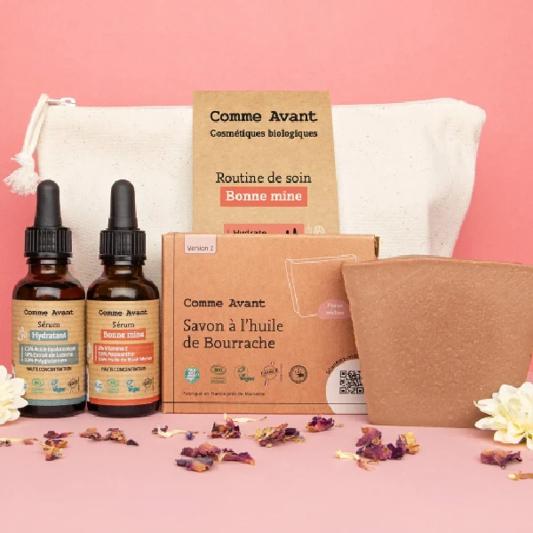 Un coffret de routine de soin bonne mine composé de 3 produits 100% d’origine naturelle (prix : 32,70€).