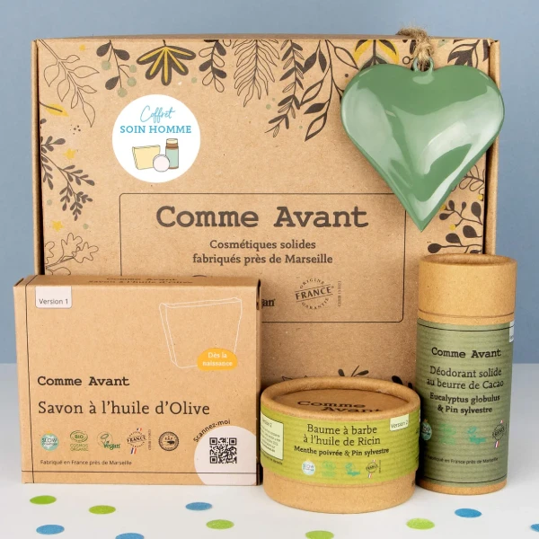 Un coffret de soins solides bio à composer vous-même pour initier votre homme au zéro déchet (prix : 31,70€).
